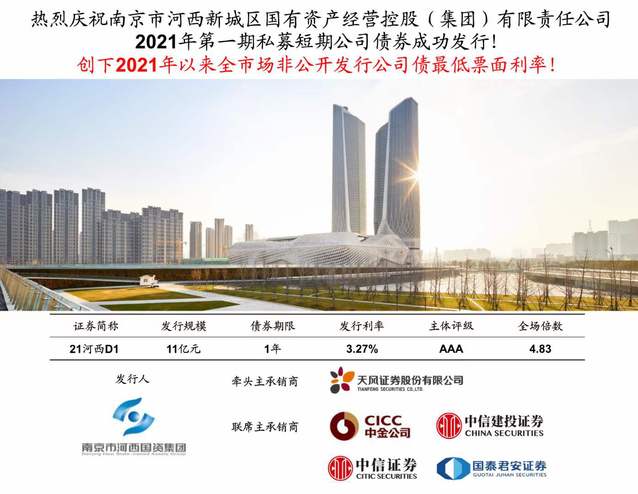 此次發(fā)行由天風(fēng)證券股份有限公司牽頭,四家證券公司聯(lián)席組成承銷團(tuán),河西集團(tuán)財(cái)務(wù)管理部憑借多年的發(fā)債經(jīng)驗(yàn),參與市場調(diào)研,拓展了工作思路,調(diào)整債務(wù)結(jié)構(gòu)。