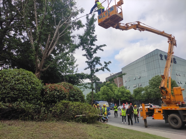 與此同時(shí),另一條指令隨即傳出,“河西大街樹木枯枝斷枝,存在極大安全隱患,立刻到場(chǎng)處置”。公司立即調(diào)配3輛園林搶險(xiǎn)車輛、1輛高架車,20名搶險(xiǎn)隊(duì)員第一時(shí)間趕到現(xiàn)場(chǎng)。指揮勘查險(xiǎn)情、實(shí)施圍擋、引導(dǎo)交通、處理險(xiǎn)枝,大家分工明確、操作熟練,搶險(xiǎn)過(guò)程一氣呵成。20分鐘后,這株干徑超過(guò)40厘米、高10米的大樹上的枯枝已全部修剪到位,解除了安全隱患。