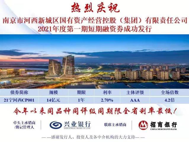 南京市河西新城區(qū)國有資產(chǎn)經(jīng)營控股(集團)有限責任公司(以下簡稱“河西集團”)成功發(fā)行2021年度第一期短期融資債券。