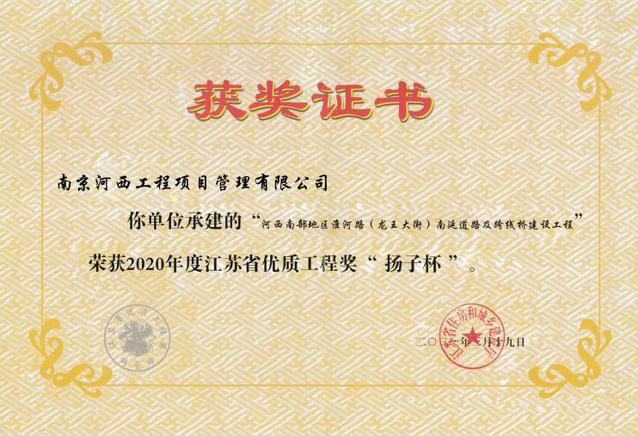 龍王大街項目“揚子杯”證書