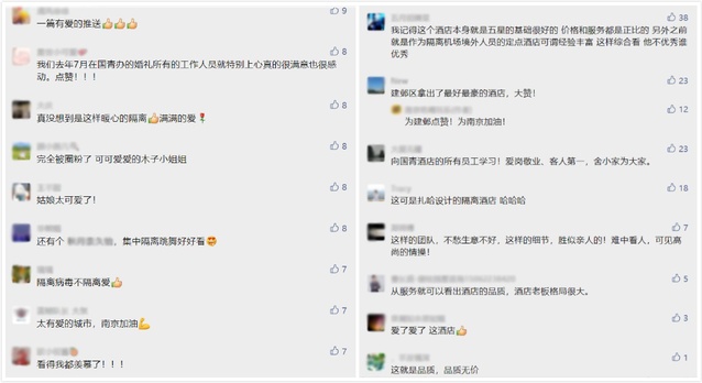 圖▲國青酒店在互聯(lián)網(wǎng)社交平臺收到的各種稱贊