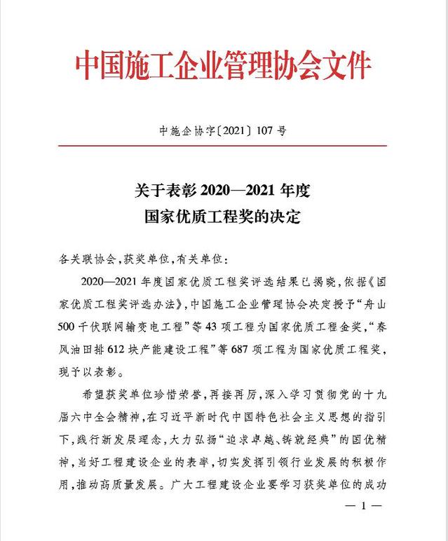 2021年12月6日,中國施工企業(yè)管理協(xié)會公布2020-2021國家優(yōu)質(zhì)工程獎獲獎名單,河西集團新城公司所屬南京河西工程項目管理有限公司代建的招商銀行南京分行招銀大廈項目喜獲該獎項。國家優(yōu)質(zhì)工程獎設(shè)立于1981年,是經(jīng)國務(wù)院確認(rèn)的我國工程建設(shè)領(lǐng)域設(shè)立最早,規(guī)格最高,跨行業(yè)、跨專業(yè)的國家級質(zhì)量獎。