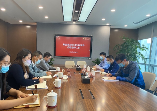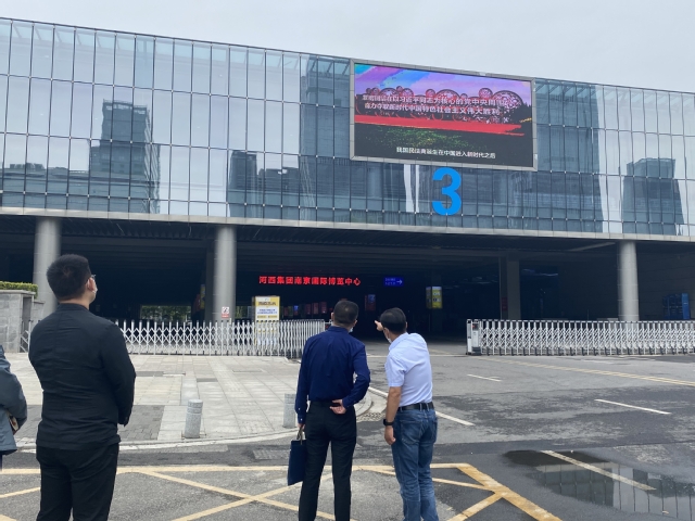5月26日上午,市司法局黨組成員、副局長(zhǎng)賀慶帶隊(duì)蒞臨集團(tuán)就法治宣傳工作開展情況進(jìn)行調(diào)研指導(dǎo)。在集團(tuán)副總經(jīng)理、黨委委員曹志堅(jiān)陪同下,調(diào)研組一行先后赴國(guó)際博覽中心、青年文化體育公園、魚嘴濕地公園白鷺廣場(chǎng)等地,對(duì)人群集中地段的戶外大型電子顯示屏進(jìn)行實(shí)地考察,現(xiàn)場(chǎng)觀看了民法典公益廣告及宣傳標(biāo)語(yǔ)等播放情況?,F(xiàn)場(chǎng)調(diào)研后,曹志堅(jiān)對(duì)集團(tuán)法治文化環(huán)境及建設(shè)情況進(jìn)行了詳細(xì)匯報(bào)。