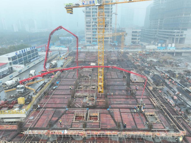 河西金融中心項(xiàng)目提前完成東區(qū)塔樓及裙樓正負(fù)零板澆筑